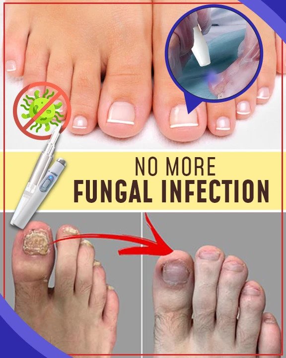 - Stlačte tlačidlo zapnutia antifungálneho lasera a ukážte na určené miesto.