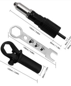 - BALENIE OBSAHUJE: 1* Súprava adaptéra na nitovaciu pištoľ so 4 ks (pištoľ na slepé nitovanie *1 + rukoväť *1+kľúč*1+hlava nitu*4