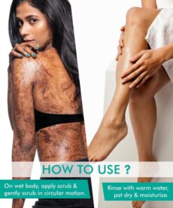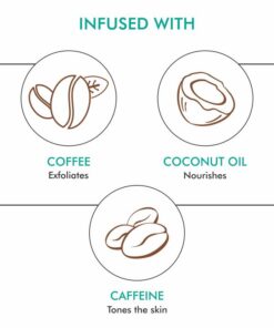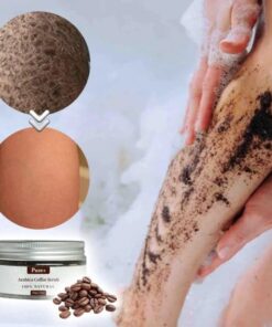 - Zloženie: Bio kávový prášok, soľ z Mŕtveho mora, Olivový olej, Sladký mandľový olej, Kávový olej zo semien Arabica, Kokosový olej, Organické bambucké maslo, Kakaový extrakt, Kávové zrná Arabica
